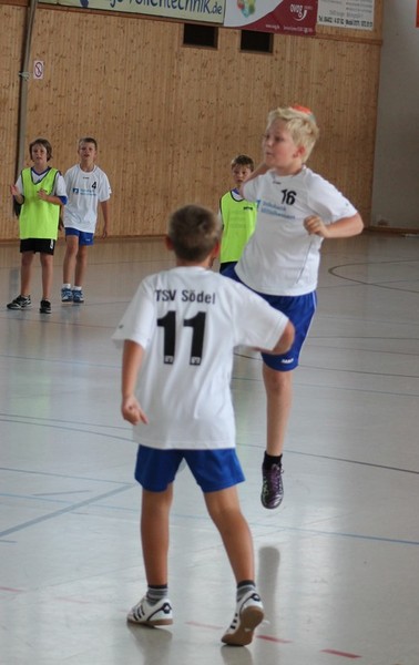 Diese erwischten einen super Start in die neue Saison. Gleich zu Beginn des Spiel startet der TSV voll konzentriert und lag schnell 9:0 vorne. Jetzt konnten die Trainer neues Testen und mischten die Positionen ordentlich durch. Doch der Sieg war nie im Gefahr, trotz vieler neuer Spielpositionen ging der TSV mit einer deutlichen 18 : 2 Führung in die Pause. In der zweiten Halbzeit merkte der TSV doch das man nur 7 Feldspieler hatte, die Kräfte lassen ein wenig nach und der Gegner kam zu mehr Toren, da in der Abwehr nicht mehr so konzentriert gearbeitet wurde. Jetzt konnte Tizian Zachaeus im Tor von Södel zeigen was er drauf hat, mit guten Paraden brachte er die Gäste zur Verzweiflung. Am Ende siegten die Södeler mit 20 (!) Toren Vorsprung 29 : 9.