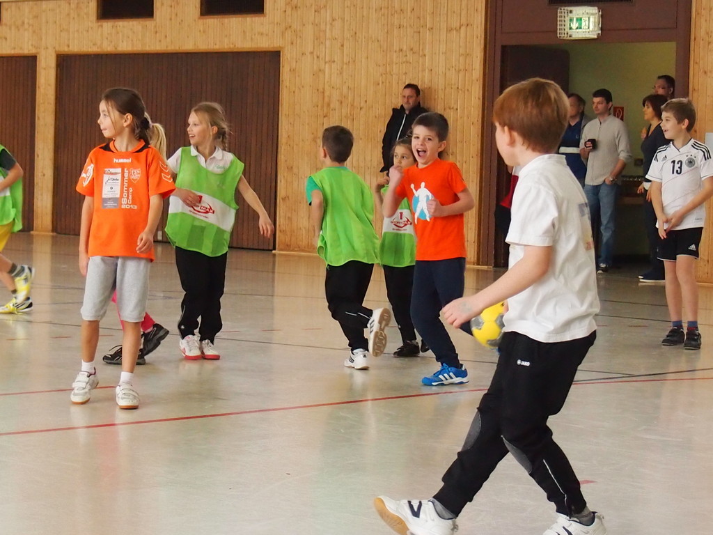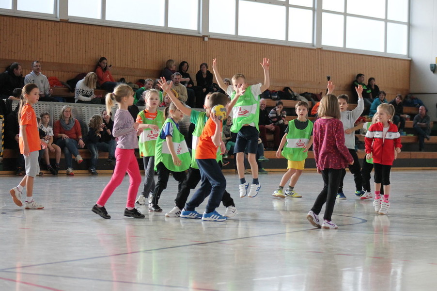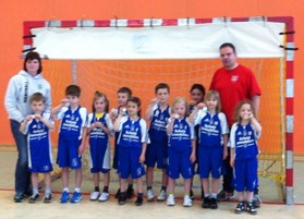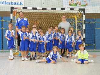 Am 16.3.14 nahmen unsere Minis am Mini Anfängerturnier in Oberkeen teil. Schon früh machten wir uns auf den Weg, denn um 9.15 Uhr sollte das gemeinsame Warmmachen stattfinden. Um 9.30 Uhr begannen die 10 Mannschaften, eingeteilt in zwei Gruppen mit dem Spielbetrieb. Da die meisten Mannschaften mit vielen Kinder angereist waren, wurde der Modus kurzfristig von 4 + 1auf 5 + 1 geändert. Das kam auch unseren Kinder zu Gute, hatten doch so alle Kinder noch mehr Möglichkeit zu spielen. Unsere Mannschaft wurde in Gruppe 2 eingeteilt. Im ersten Spiel gegen Fernwald war allen Kindern eine gewisse Nervosität anzumerken, war es doch für die Hälfte der Kinder ihr erstes Handballspiel überhaupt. In den nächsten Spielen gegen Vollnkirchen, Linden und Stockhausen hatte sich dies aber gelegt und alle Kinder waren mit Spaß bei der Sache. Die Freunde der Kinder war riesengroß, als zur abschließenden Siegerehrung alle Spieler noch eine Medaille bekamen. Für uns als Betreuer war es wichtig, dass alle Spieler genügend Spielzeit bekamen. Ich denke, das Turnier hat allen sehr viel Spaß gemacht.