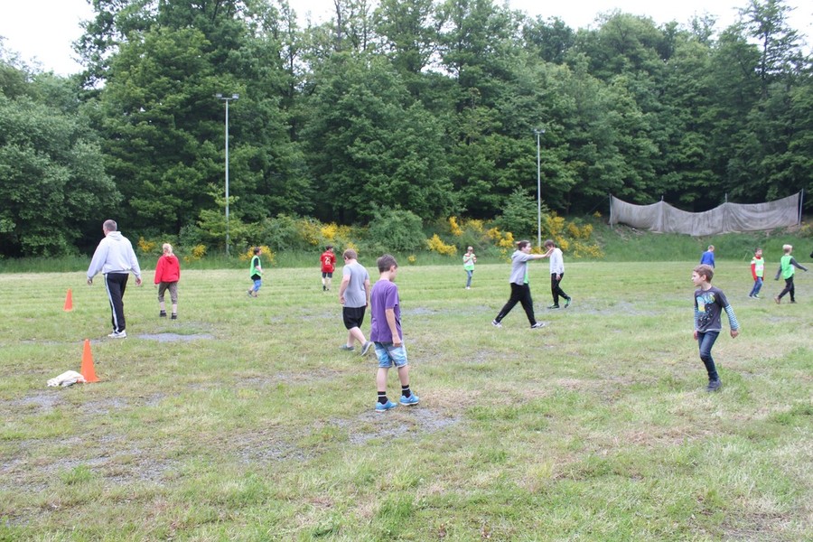 Der Samstagmorgen wurde wieder zum Staudammbau im Bach und toben im hügeligen Waldgelände genutzt. Anschließend gingen wir auf eine Fotorally, spielten auf den Sportplatz und machten einige