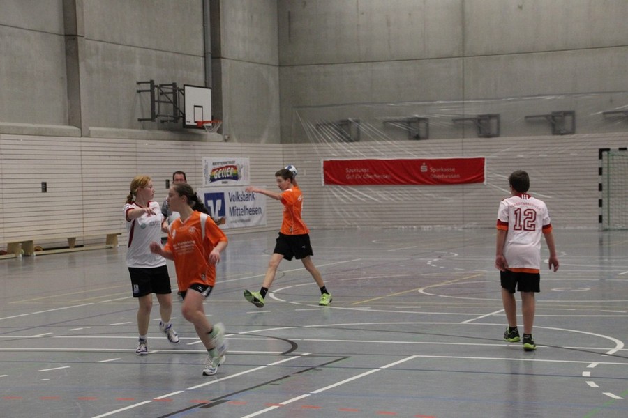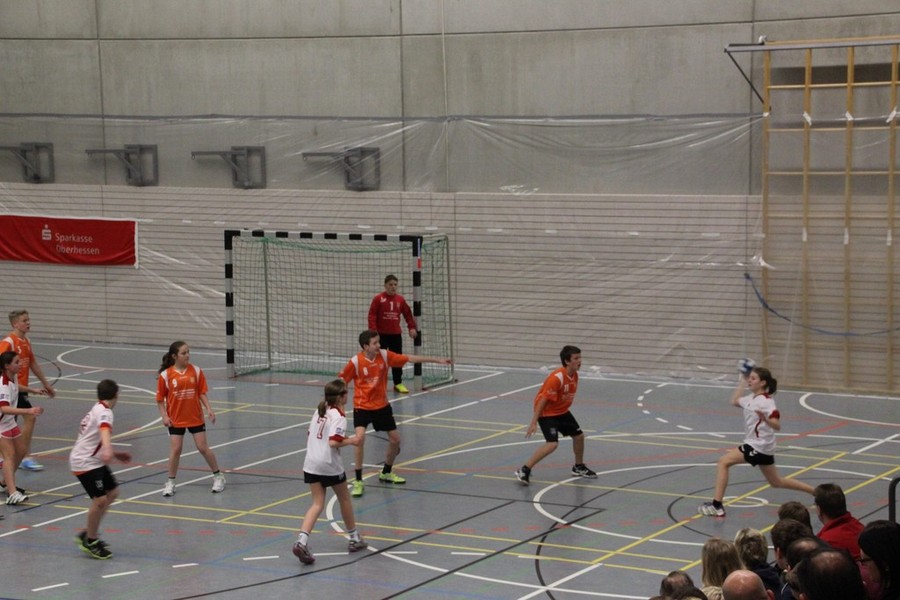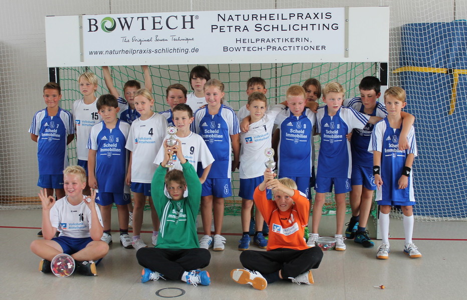 In dem mit 12 Mannschaften besetzten Turnier konnten wir uns in der Gruppenphase, mit 3 Siegen und einer Niederlage fürs Halbfinale qualifizieren. Im Halbfinale trafen wir auf die HSG Busseck/Beuern. Dieses Spiel konnten wir auf Grund unserer vielen Torschützen deutlich mit 9:4 (multipliziert 54:12; 9x6 =54; 4x3=12) gewinnen. Im Endspiel ging es gegen Wettenberg 1. Nach schwacher Anfangsphase liefen wir einem 0:3 Rückstand hinterher, diesen konnten wir jedoch mit drei Toren in Folge zum 3:3 ausgleichen. Wettenberg legte wieder vor. In dieser Phase unterliefen uns in der Anwehrhälfte mehrere Abspielfehler durch Unkonzentriertheiten. Sodas Wettenberg mit 4:7 davonziehen konnte. Unsere Jungs steckten nicht auf und konnten noch auf 7:8 verkürzen. Den letzten Treffer erzielte der Turniersieger Wettenberg 1. Endstand 7:9 (28:54; 4x7=28; 6x9=54).