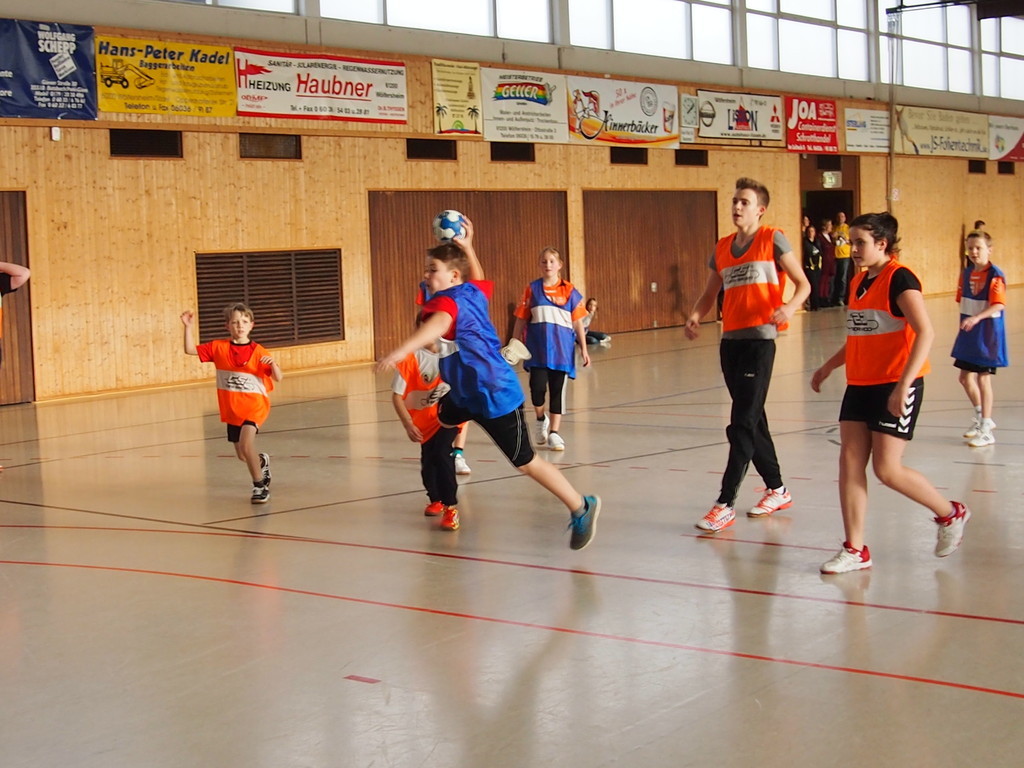 Im ersten Spiel traf die heimische JSG auf die Mannschaft aus Bieber. Von Beginn an spielte man konzentriert und lies kaum Chancen des Gegners zu. Im Angriff wurde gefällig kombiniert und so konnte man bis zur Pause (Spielzeit 2x12 Min.) eine 5:1 Führung herausspielen. Nach dem Wechsel kam das Angriffsspiel der HSG etwas ins Stocken. Bieber konnte schnell auf 5:4 verkürzen, doch konnte man wieder kontern am Ende mit 8:5 das erste Spiel gewinnen.