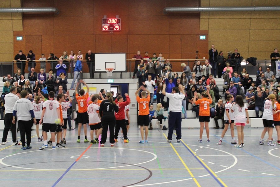 Carl-von-Weinberg-Schule aus Frankfurt. Durch starke Abwehrleistung und sehr schönen Kombinationsspiel im Angriff konnte diese Spiel überzeugend für die Singbergschule entschieden werden. Die