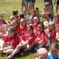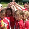 Am 07.06.2015 nahmen wir mit der neu gegründeten gemischten E-Jugend am Turnier in Gettenau teil. Da nur die Mannschaften aus Münzenberg und Florstadt/Gettenau gemeldet hatten, wurde in einer Doppelrunde gespielt. Konnten wir den Torwart von Florstadt/Gettenau am Anfang noch mit einer schönen Kombination überwinden, hatten wir im weiteren Verlauf gegen die körperlich überlegene Mannschaft keine Chance. Im Spiel gegen Münzenberg konnte sich unsere Mannschaft steigern und den einen oder anderen schönen Treffer erzielen. In den „Rückspielen“ wurde versucht, noch besser zusammen zu spielen, was der Mannschaft zum Teil auch gut gelang. Alle Kinder waren mit vollem Einsatz dabei und freuten sich über den errungenen Pokal. Wenn man bedenkt, dass dies unser erstes E–Jugend-Turnier mit dieser Mannschaft war, kann man sehr zufrieden sein.
